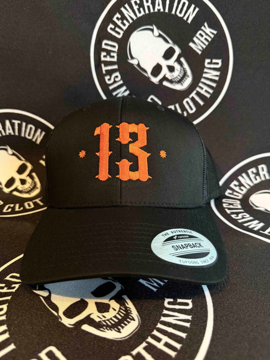Retro Trucker Supernatural Ghost Snapback Cap - Orange on Black