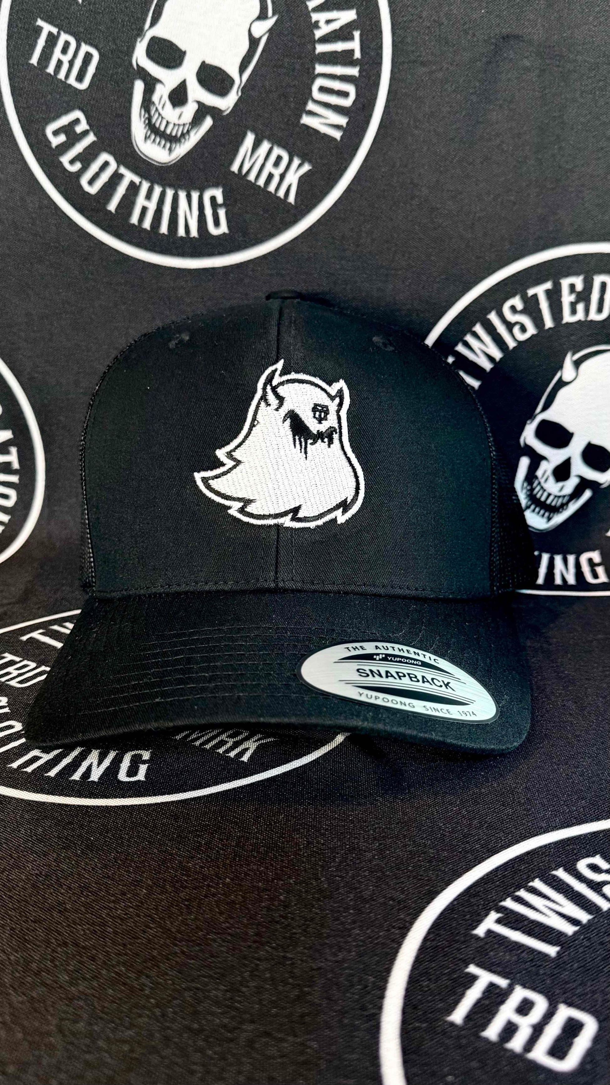 Retro Trucker Supernatural Ghost Snapback Cap - White on Black- The Authentic by Yupoong